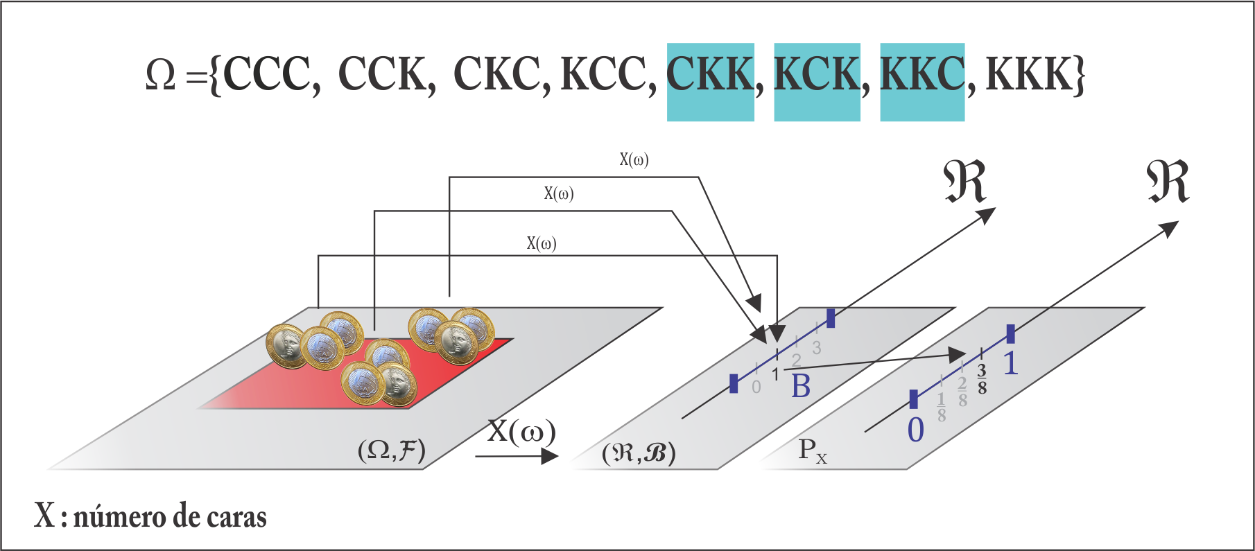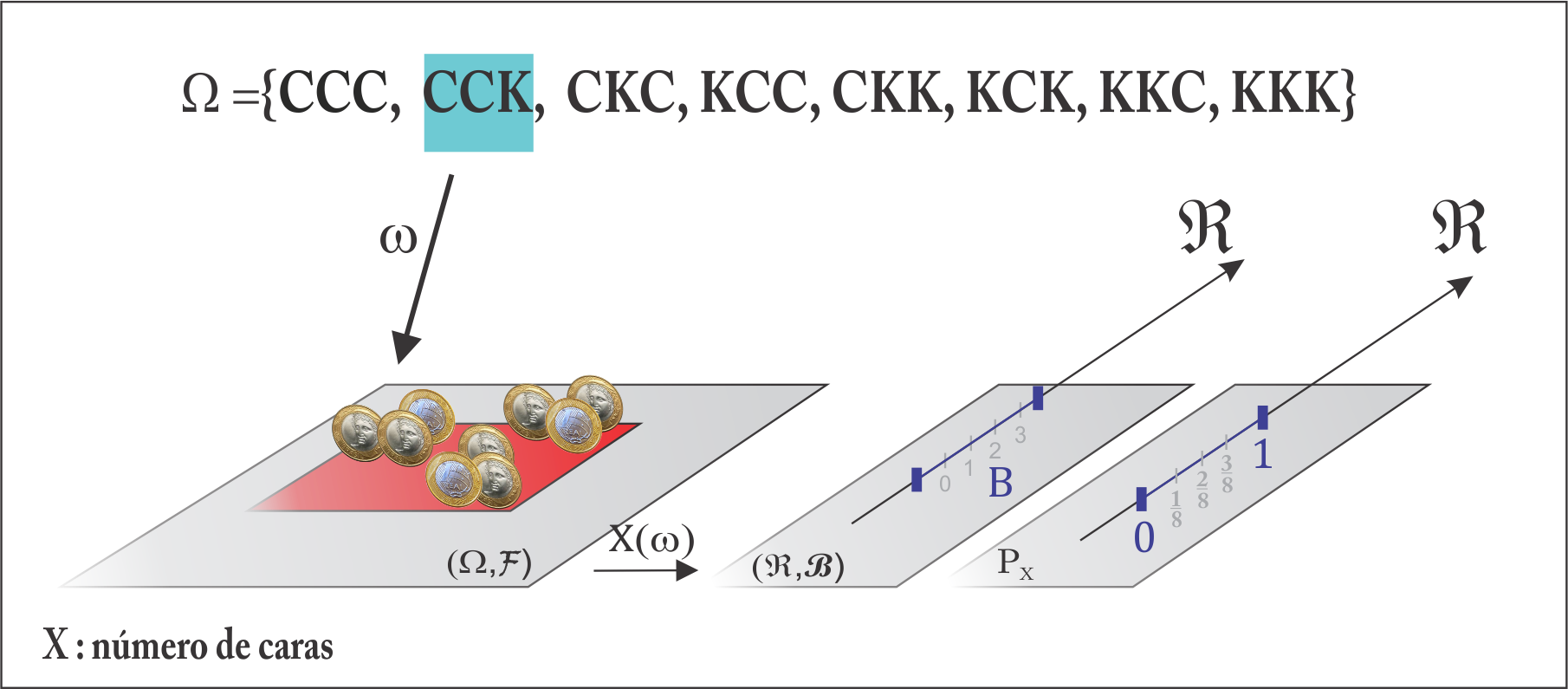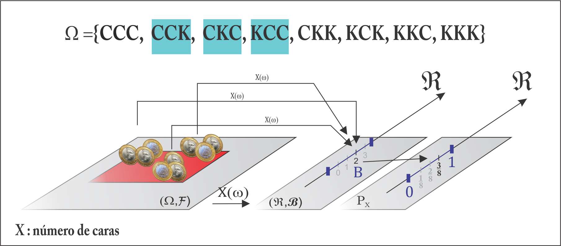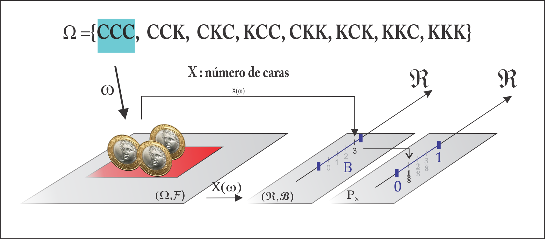 Agora olhando para a variável \(X\), tal que \(P(C_3) = p_X(2) = P(X = 2)\), temos: