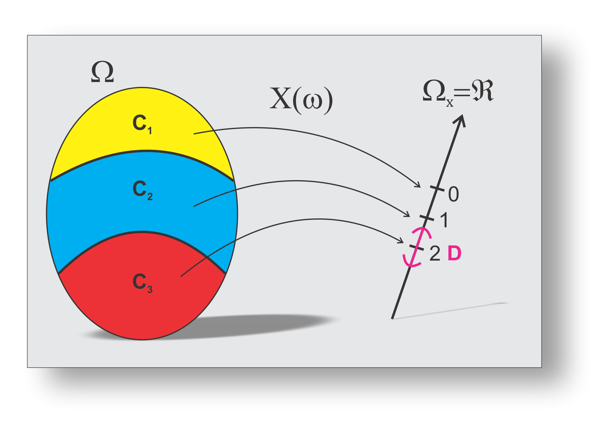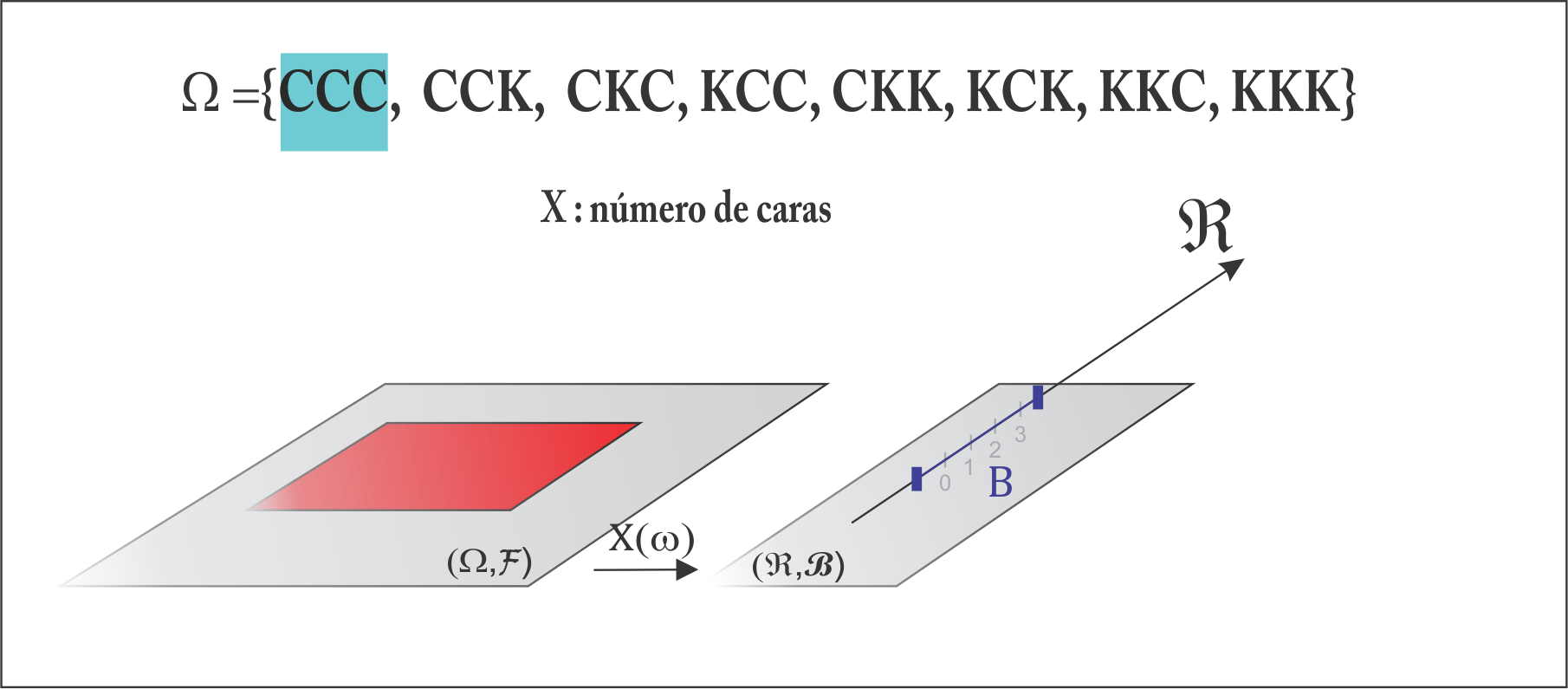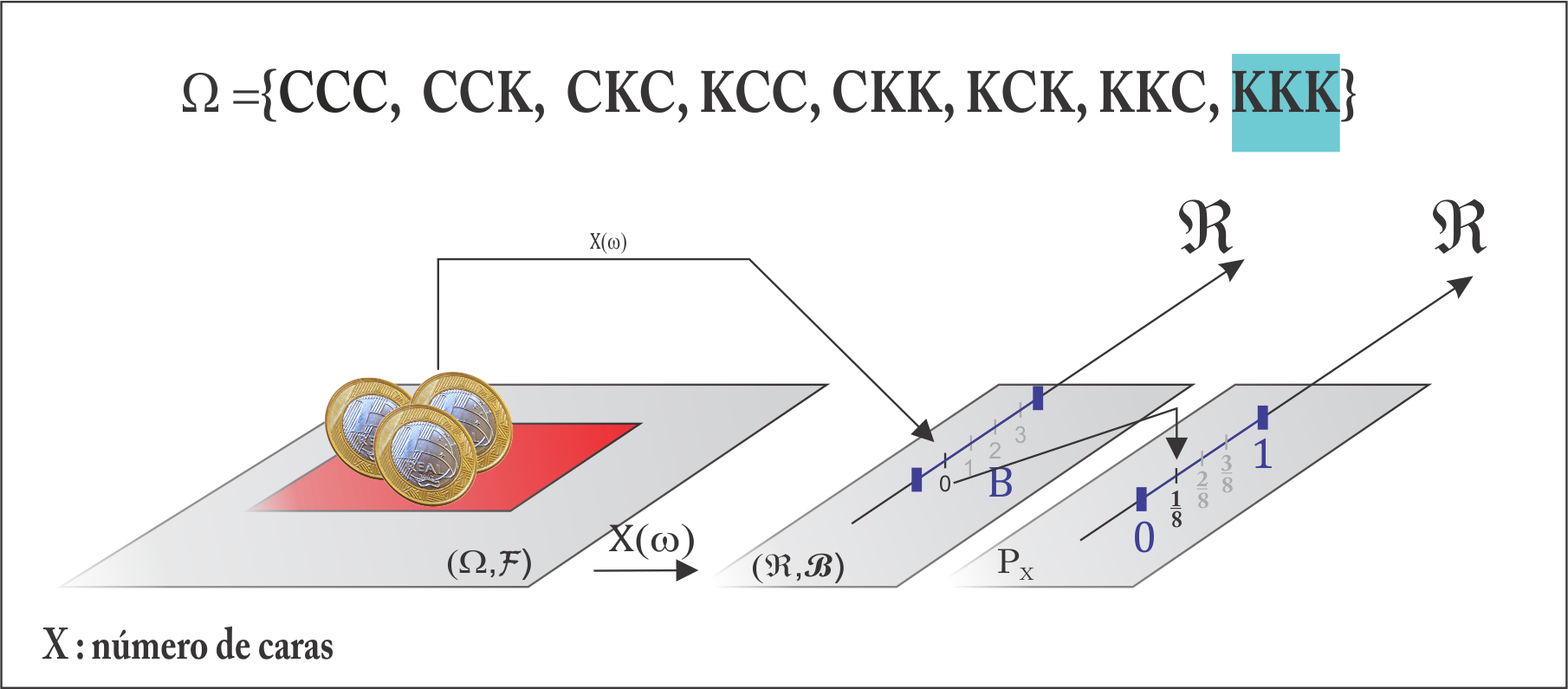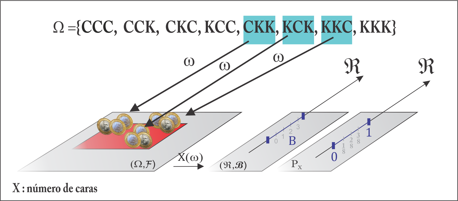 Agora olhando para a variável \(X\), tal que \(P(C_3) = p_X(2) = P(X = 2)\), temos: