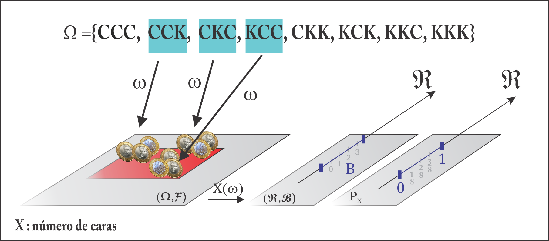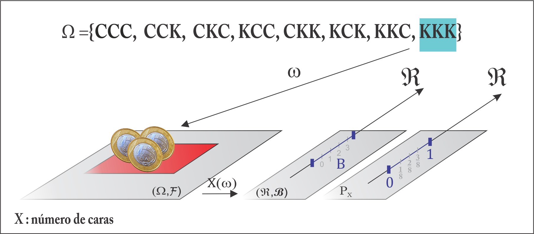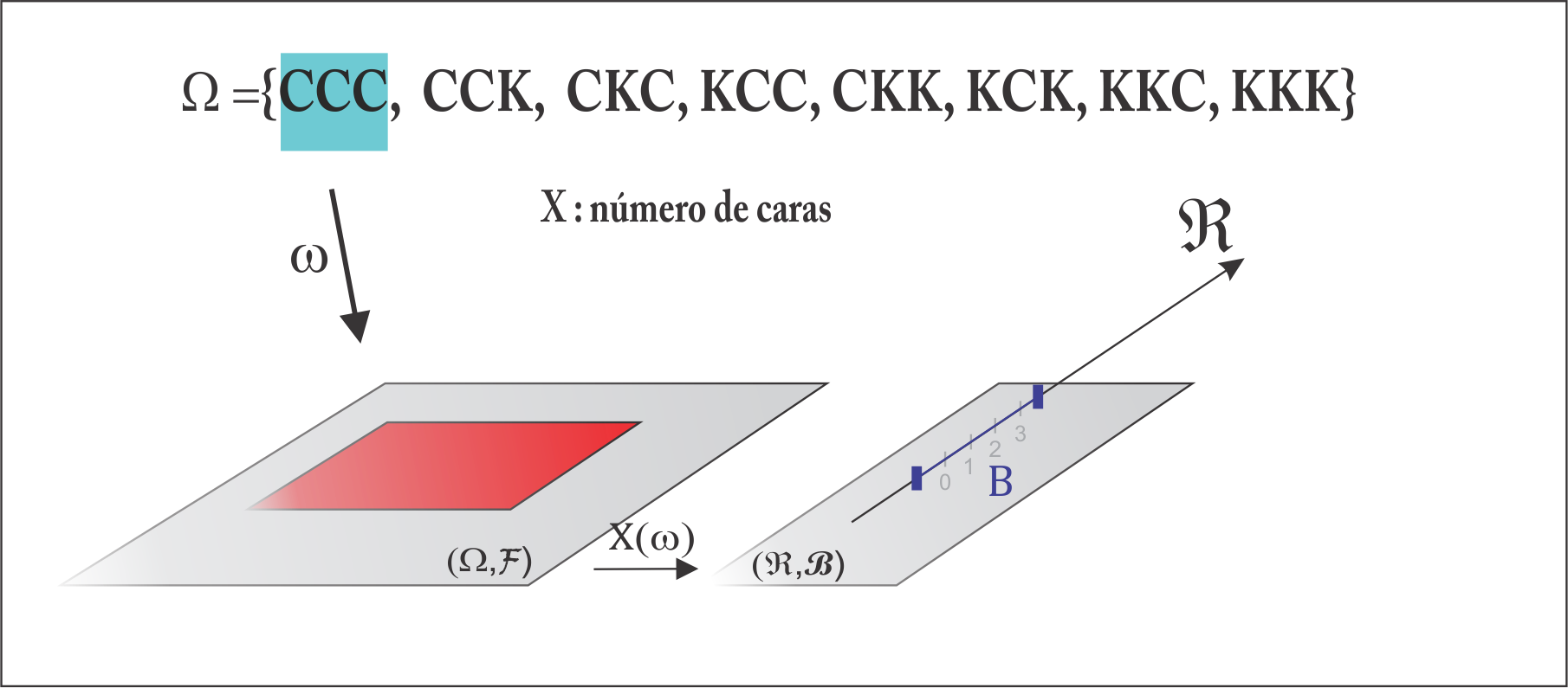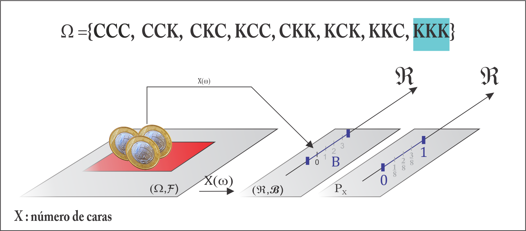 Agora olhando para a variável \(X\), tal que \(P(C_3) = p_X(2) = P(X = 2)\), temos: