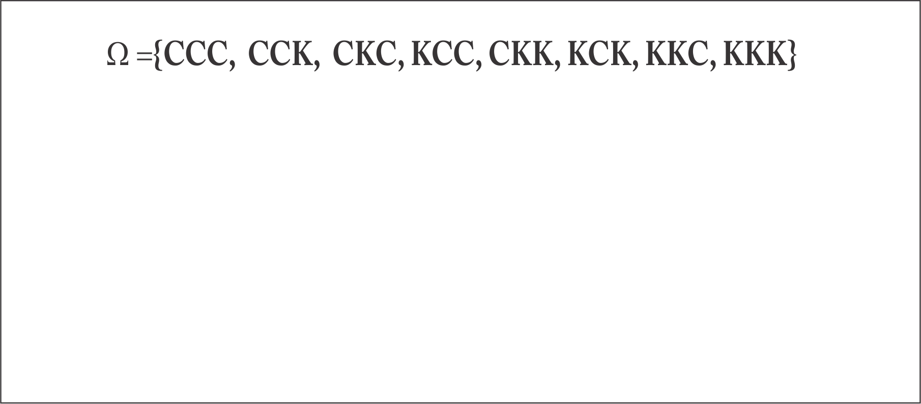 \[\begin{align} P(C_3) & = P(\{\omega \in \Omega: \omega \in C_3\}) \nonumber\\ & = P(\{(A_1,A_2)\}) \nonumber\\ & = \frac{\#\{(A_1,A_2)\}}{\#\Omega} = \frac{1}{10}. \end{align}\]