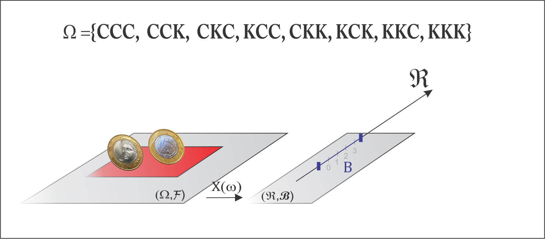 Então \(X\) é uma variável aleatória que representa a medição dessas peças, tal que \(x \in B = (a,b)\), em que \(B \subset \mathbb{R}\) .