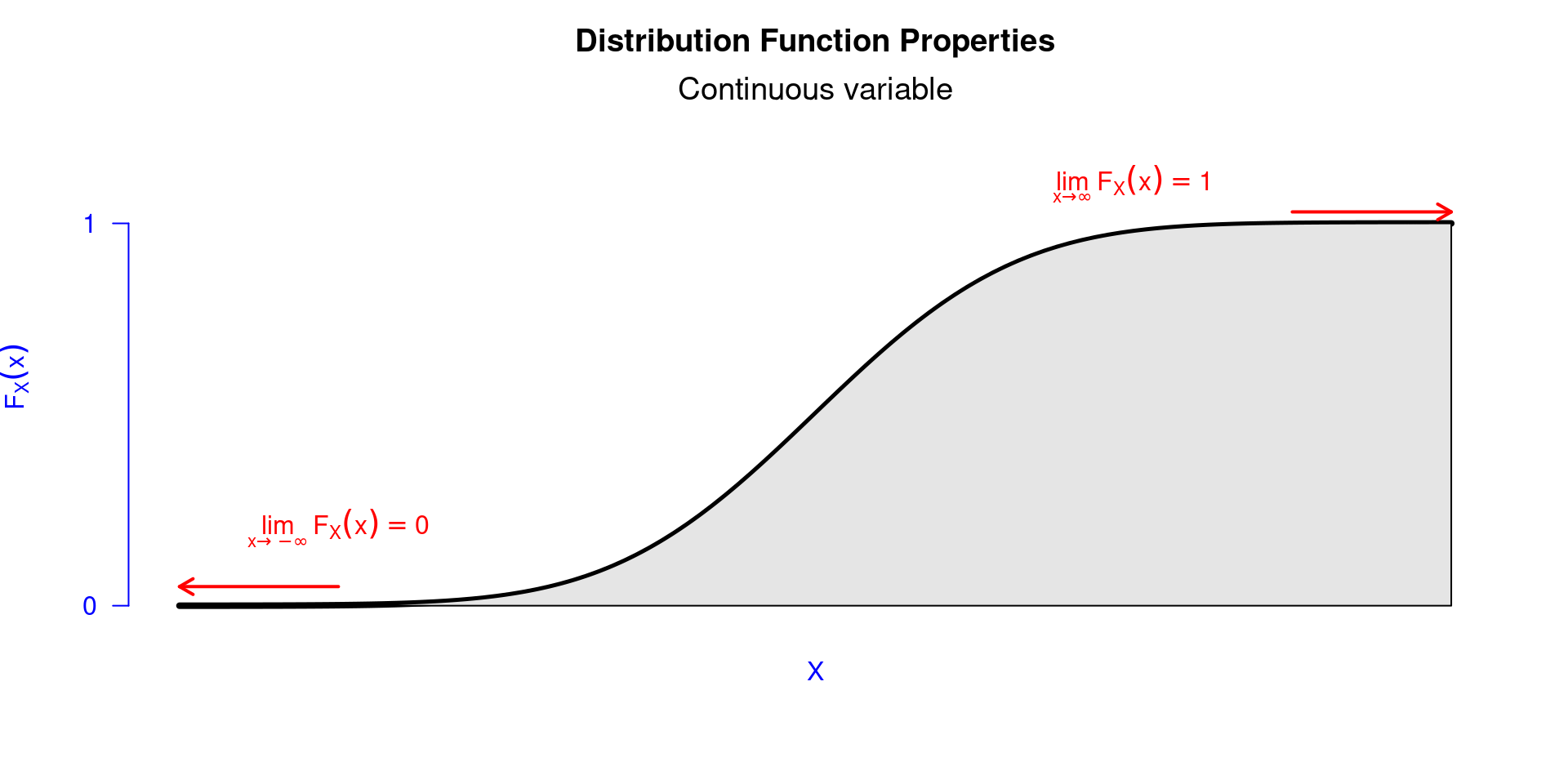 Teorema (Propriedades da FDA): Uma função de distribuição de uma variável aleatória \(X\) obedece as seguintes propriedades: