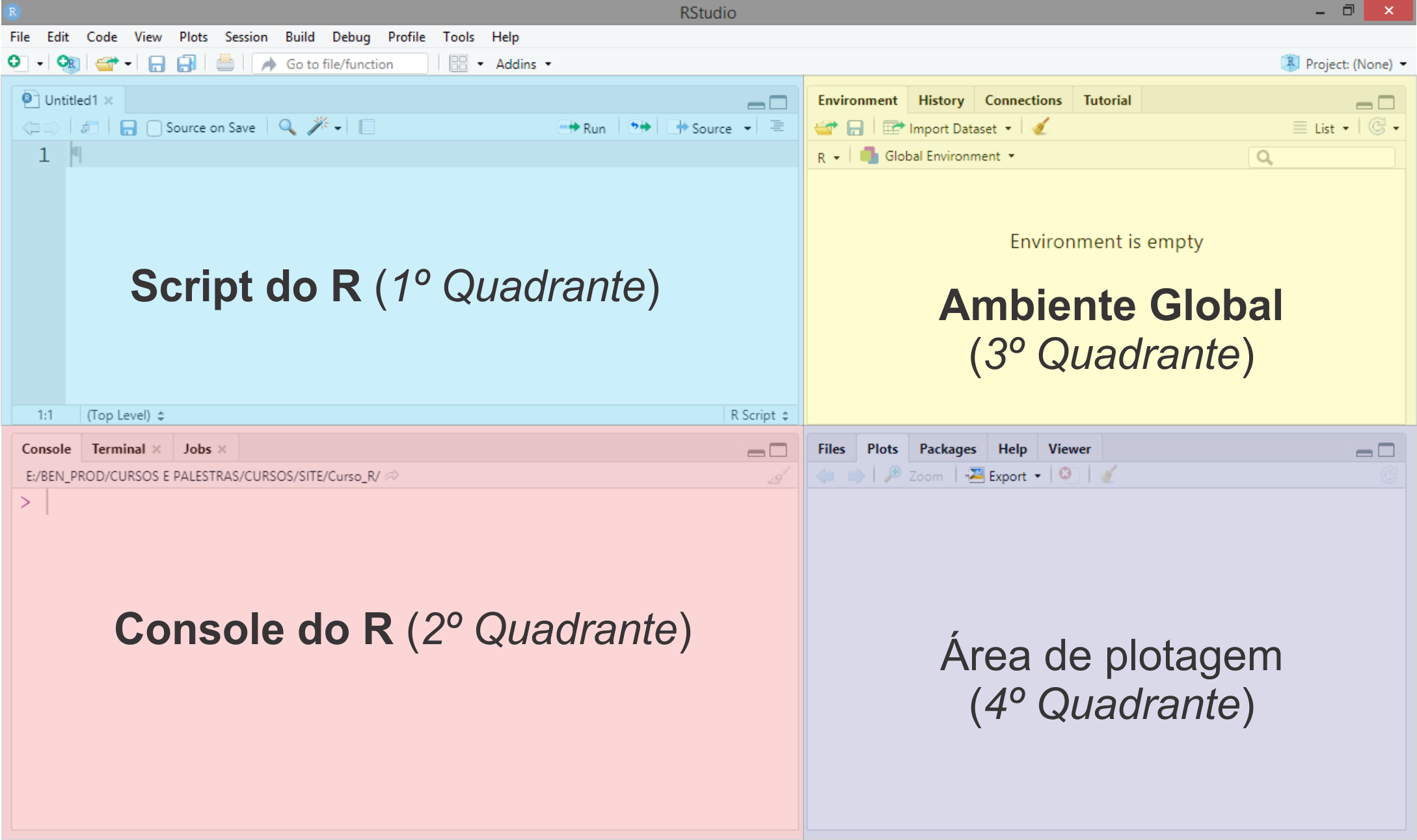 OBS.: No RStudio, para executar um comando: CTRL+ENTER (\(script\)) ou ENTER (\(console\)).