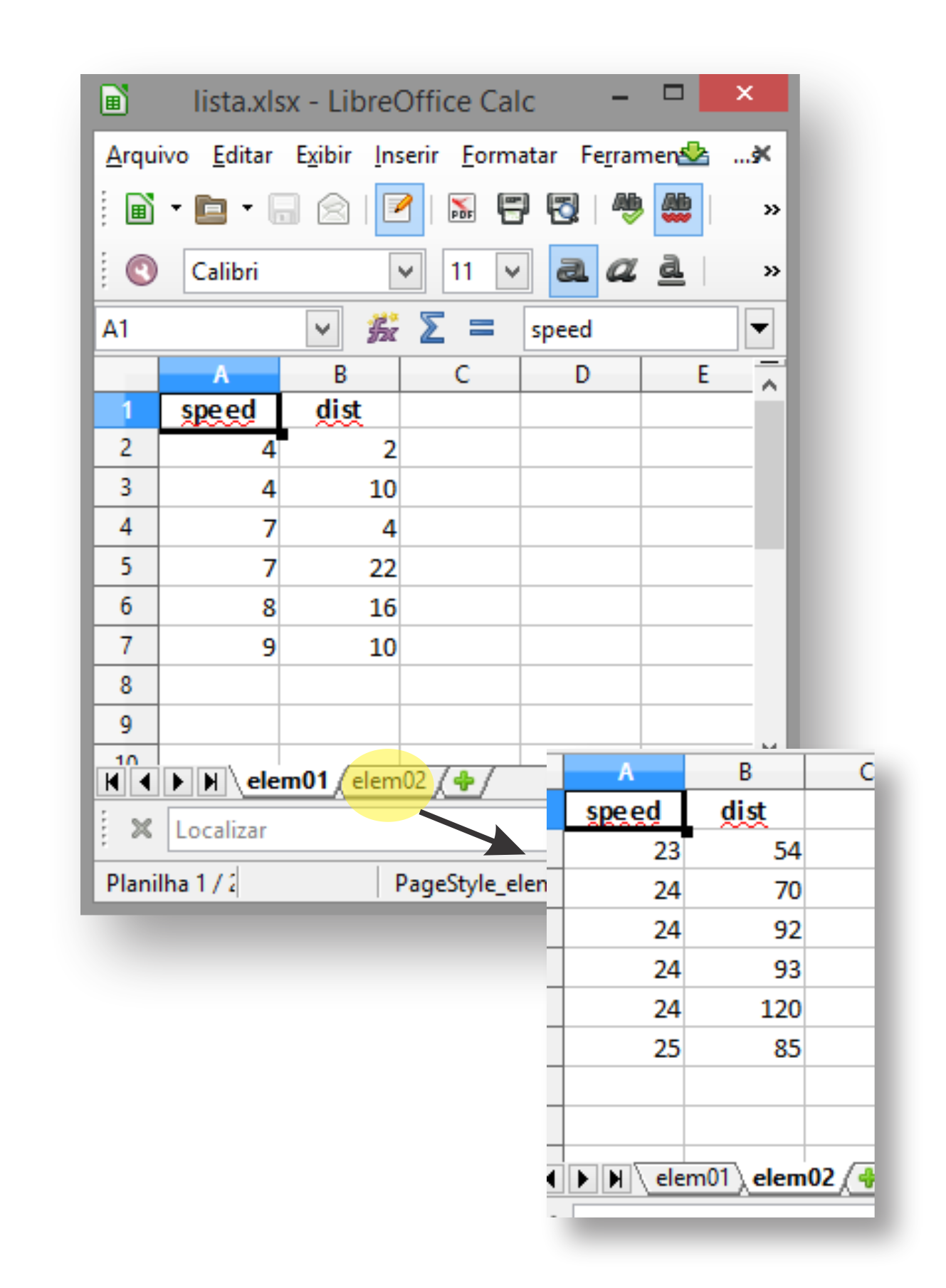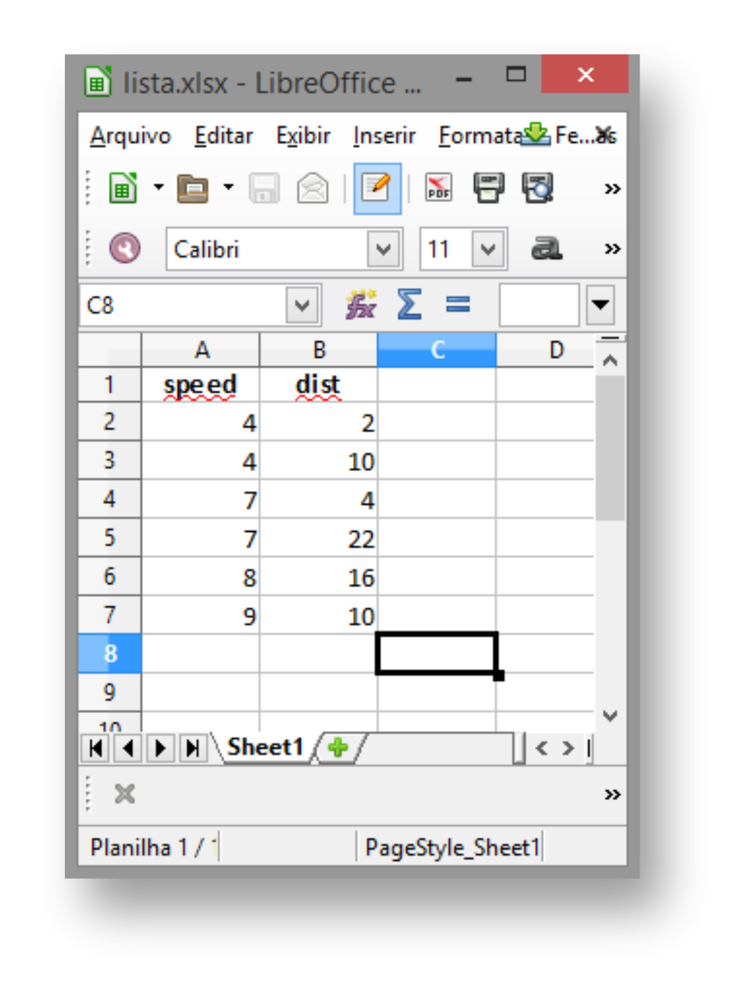 dados <- head(cars); dados # Quadro de dados (Data frame)